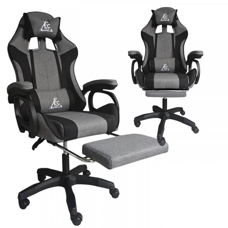 STRIKE forgó gamer szék lábtartóval és masszázspárnával, szürke KO40SZ