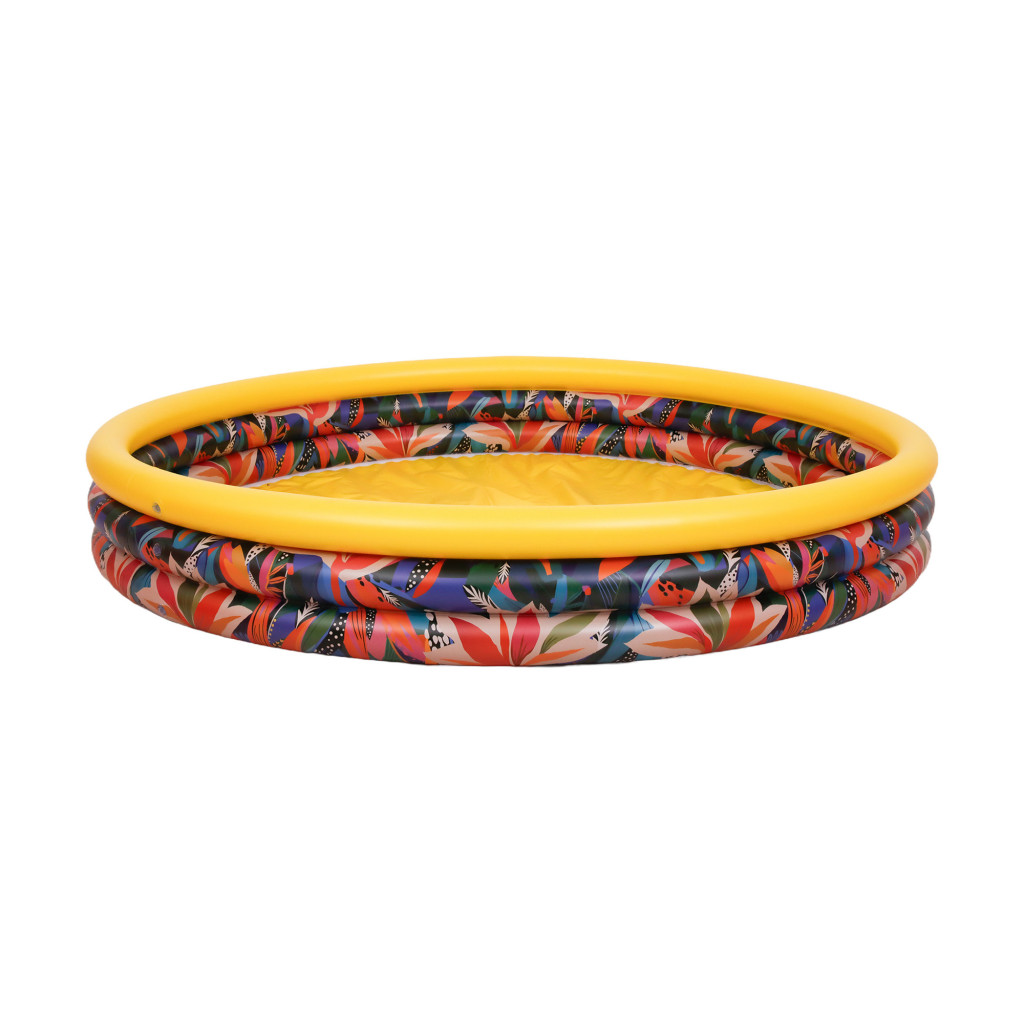 A SUNCLUB felfújható medence tökéletes megoldás a forró napokra a kicsik számára. Biztonságos és szórakoztató kerti szórakozást nyújt a 2-6 éves gyermekek számára. Kompakt méreteinek és könnyű súlyának köszönhetően gyorsan felállítható és feltölthető vízzel. A virágminta és a napsárga szín bájt kölcsönöz, igazi nyári hangulatot teremtve otthonod előtt!