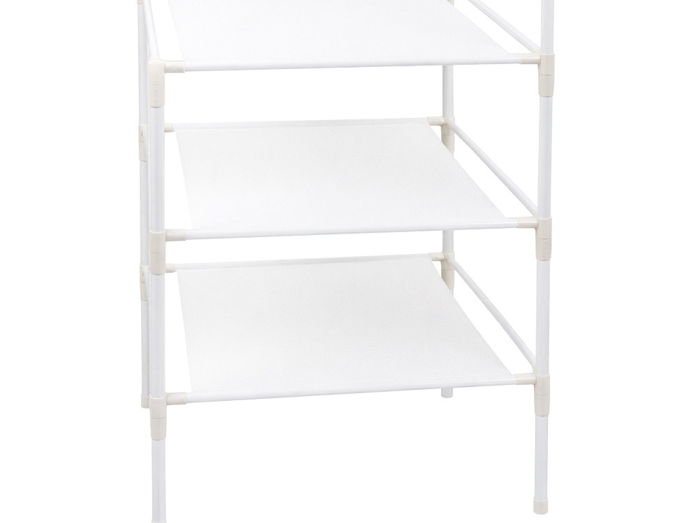 Ez a praktikus, három polccal ellátott sarok ruhaállvány tökéletes megoldás kis és nagyobb terekhez egyaránt. Átgondolt kialakításának köszönhetően lehetővé teszi, hogy előszobáját, hálószobáját vagy szekrényét rendezett állapotban tartsa, miközben nem foglal sok helyet. Kényelmesen felakaszthatja rá kabátjait, kabátjait és pulóvereit, míg az alsó polcokon cipőket, táskákat vagy kiegészítőket helyezhet el.