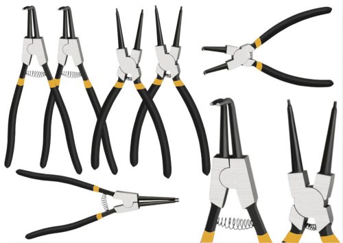 ?? Külső hajlított csőrű fogók - Tökéletesek külső biztosítógyűrűk be- és eltávolításához, kényelmes hozzáférést biztosítva különböző formájú és méretű seegergyűrűkhöz. Növeli a munka hatékonyságát és kényelmét.