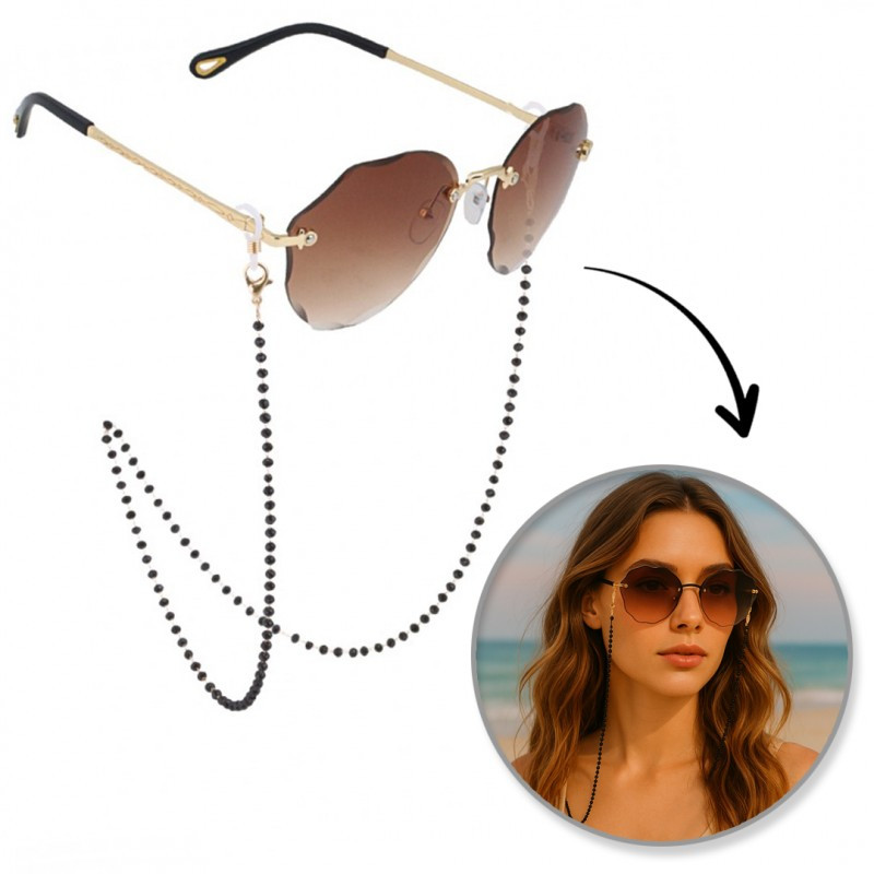 Szemüveglánc fekete gyöngyökkel LDK05