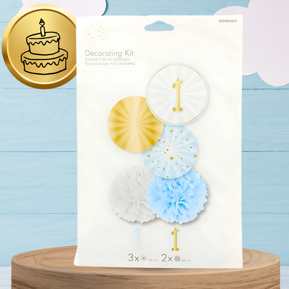 Születésnapi dekorációs készlet fiúnak az első évfordulóra, 5 darabos, kék