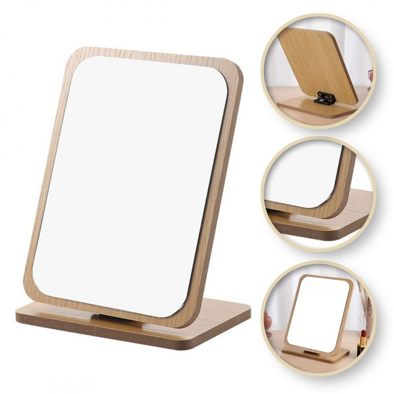 Téglalap alakú, fából készült álló kozmetikai tükör 21 x 16 cm L8BR