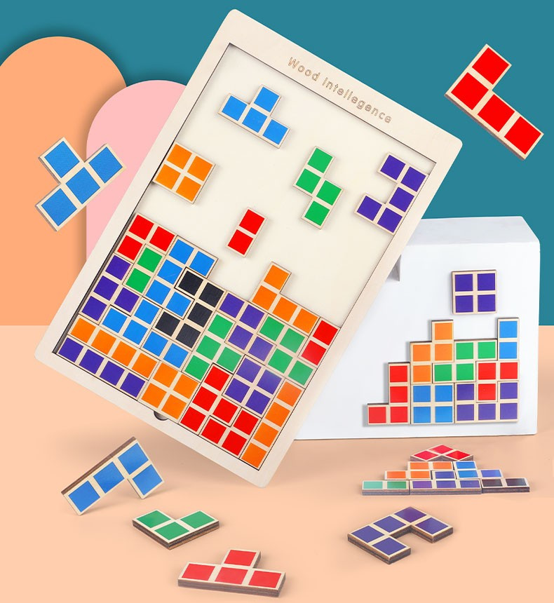 A színes, fából készült Tetris rejtvények egy igényes logikai játék, amely órákig leköti gyermekedet.