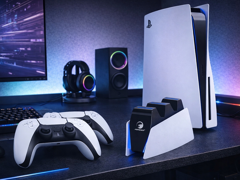 A modern PlayStation 5 kontroller töltőállomás lehetővé teszi két DualSense kontroller gyors és kényelmes egyidejű töltését. A PS5 kontrollerhez igazodó kialakításnak köszönhetően elegendő a kontrollerokat az állomásra helyezni, és a töltés automatikusan megkezdődik az érintkezőpontok révén. Ez a megoldás kiküszöböli a több kábel használatának szükségességét, és rendet tart a játékterületen.