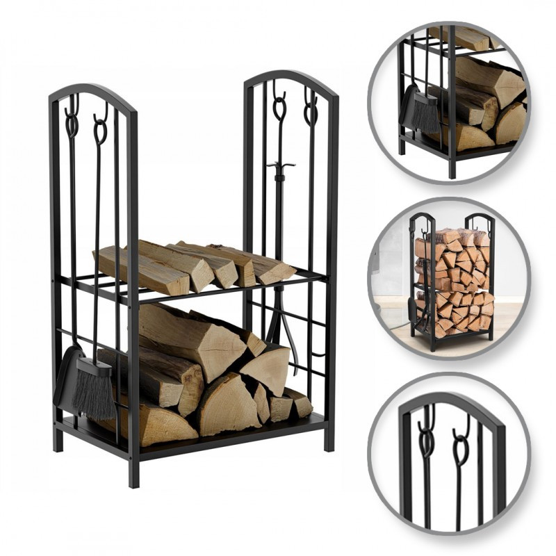 FA ÁLLVÁNY EVŐESZKÖZÖKKEL Ez a stílusos és jól illeszkedő kiegészítője otthoni kandallójának. Az acélszerkezet stabillá és tartóssá teszi az állványt. A klasszikus fekete felület bármilyen belső térhez illik. Érezze a téli aurát. Üljön kényelmesen egy karosszékben a kandalló mellett, és élvezze az élő tűz melegét. Az állványban található eszközök nemcsak a kandallóban, hanem a grillen, tűzhelyen stb. is tökéletesek. A készlet tartalma: - 4 eszköz: kefe, lapát, fogó, vasaló - állvány - rögzítőcsavarok - állvány kartondobozban csomagolva. Méretek: 73 x 40 x 30 cm A csomagolás méretei: 34 x 80 x 8 cm Súly: 7 kg Maximális terhelés: 30 kg