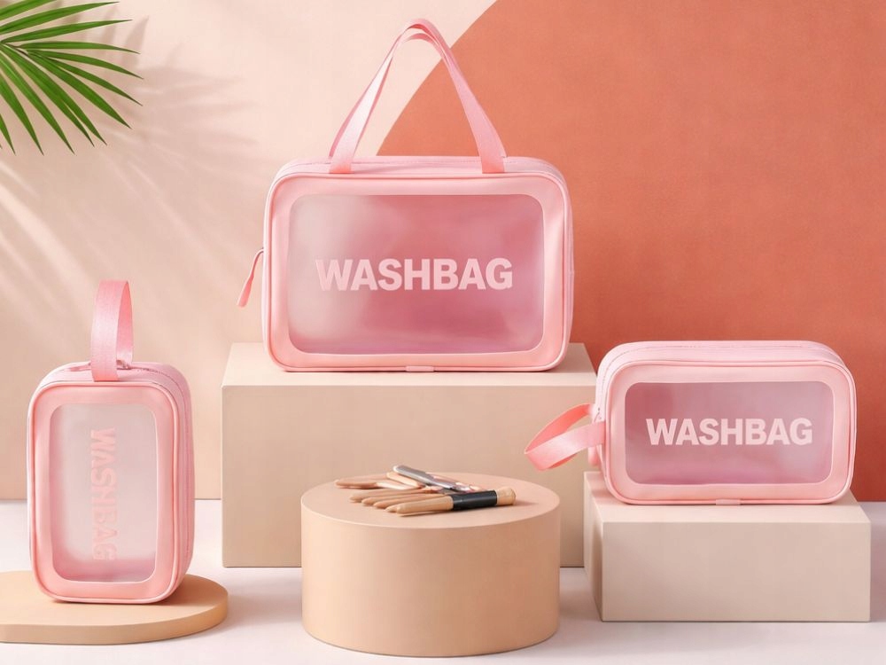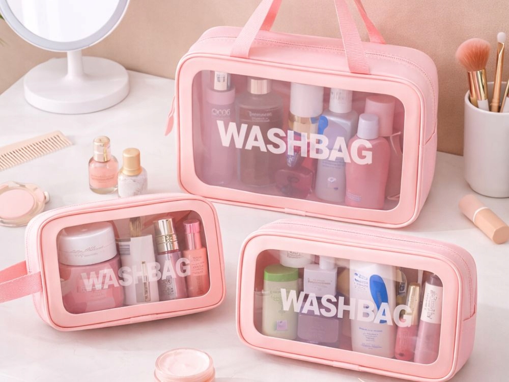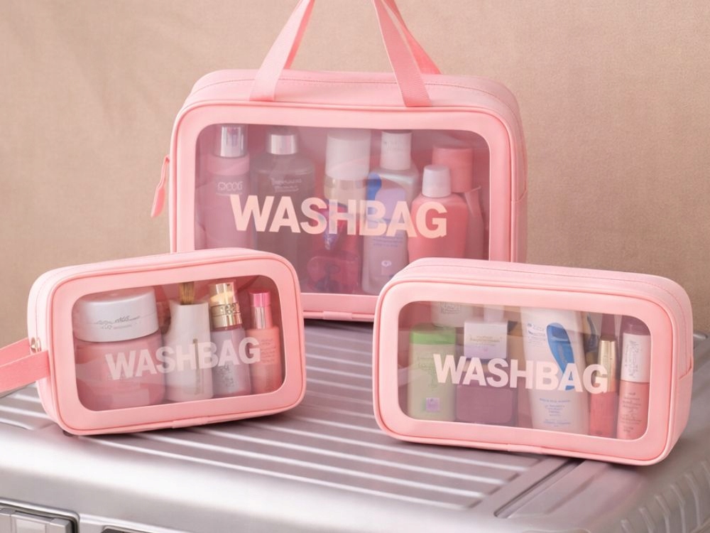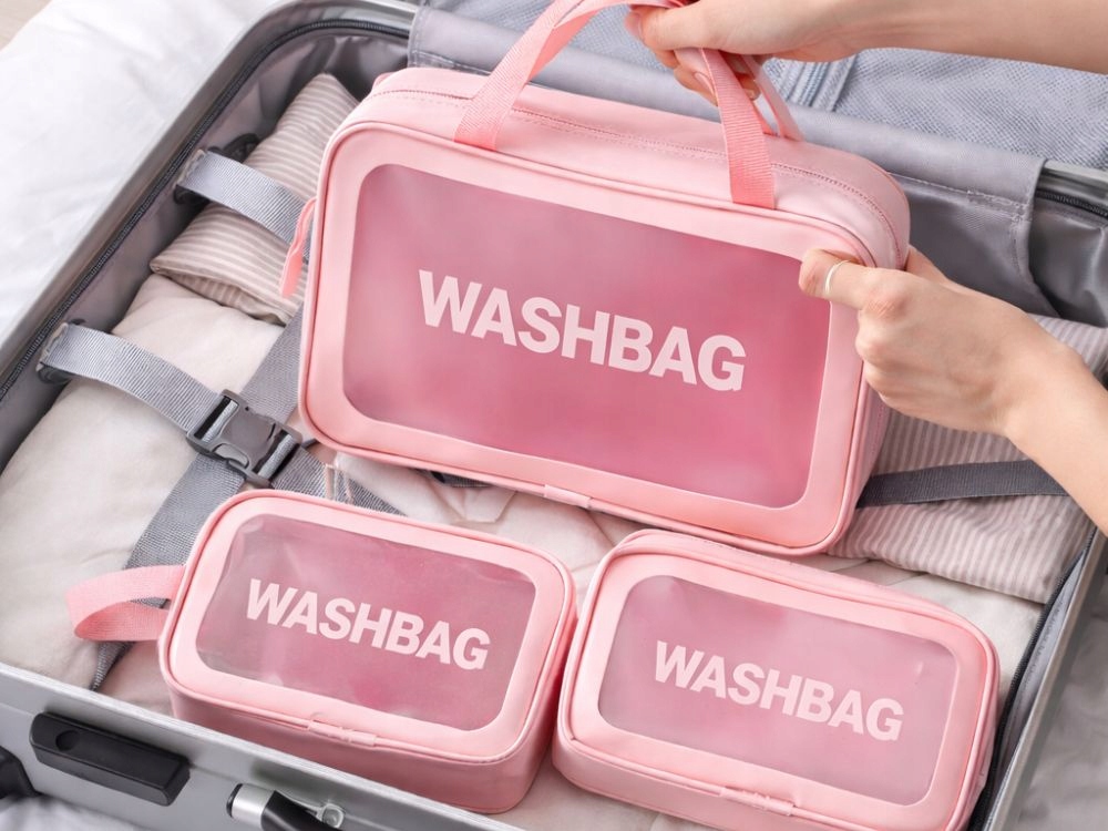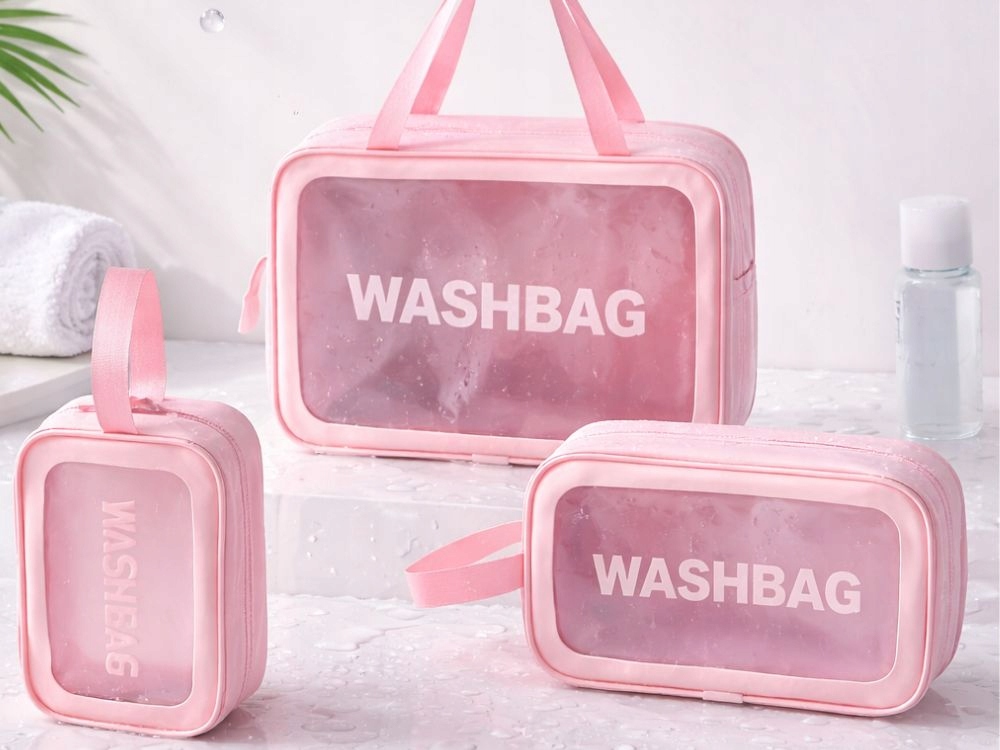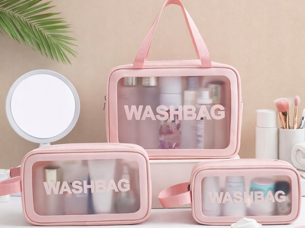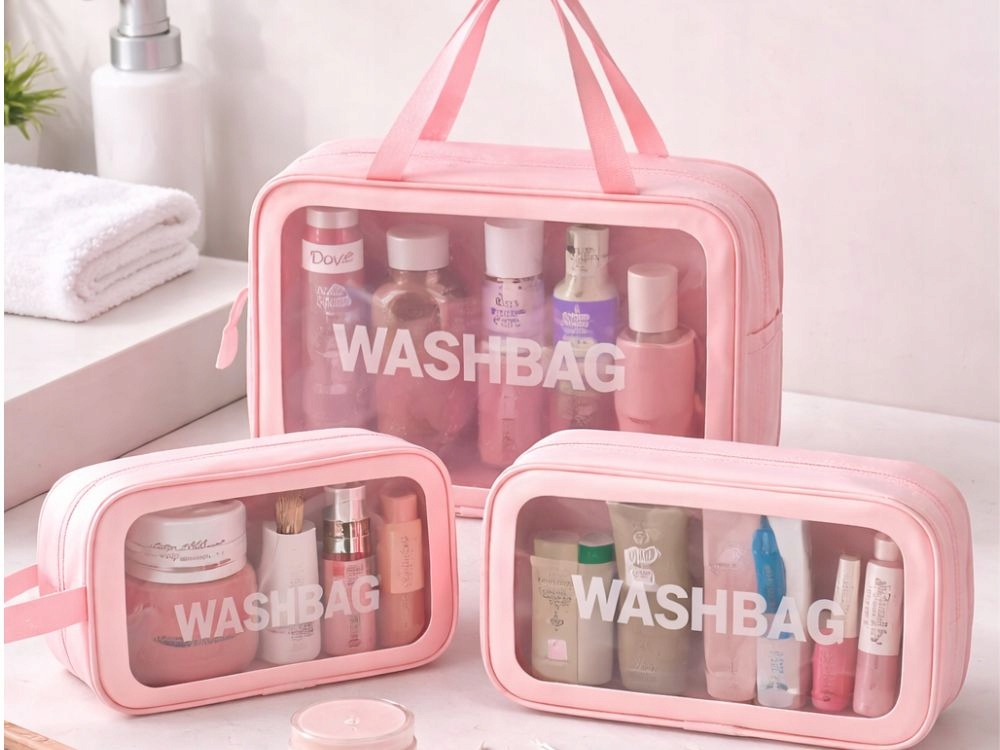 UTAZÓ KOZMETIKAI TÁSKA SZETT 3AZ1BEN ÁTLÁTSZÓ KOZMETIKUMOKHOZ