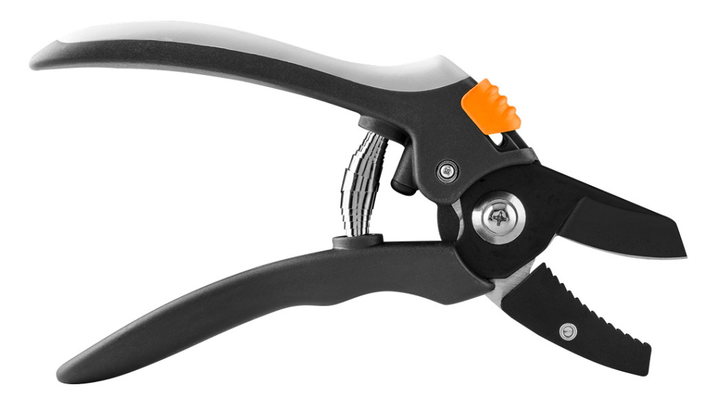 Üllős metszőolló, teljes hossza 200 mm, maximális vágási átmérő 18 mm, ergonomikus kialakítású nyél puha TPR gumi markolattal a jobb fogás és kényelem érdekében, egyszerű és biztonságos hüvelykujjrögzítés jobb és bal kézhez, állítható pengetávolság, kiváló minőségű edzett acélból készült pengék, tapadásmentes bevonattal ellátott pengék, üllőpenge kemény és száraz fához,