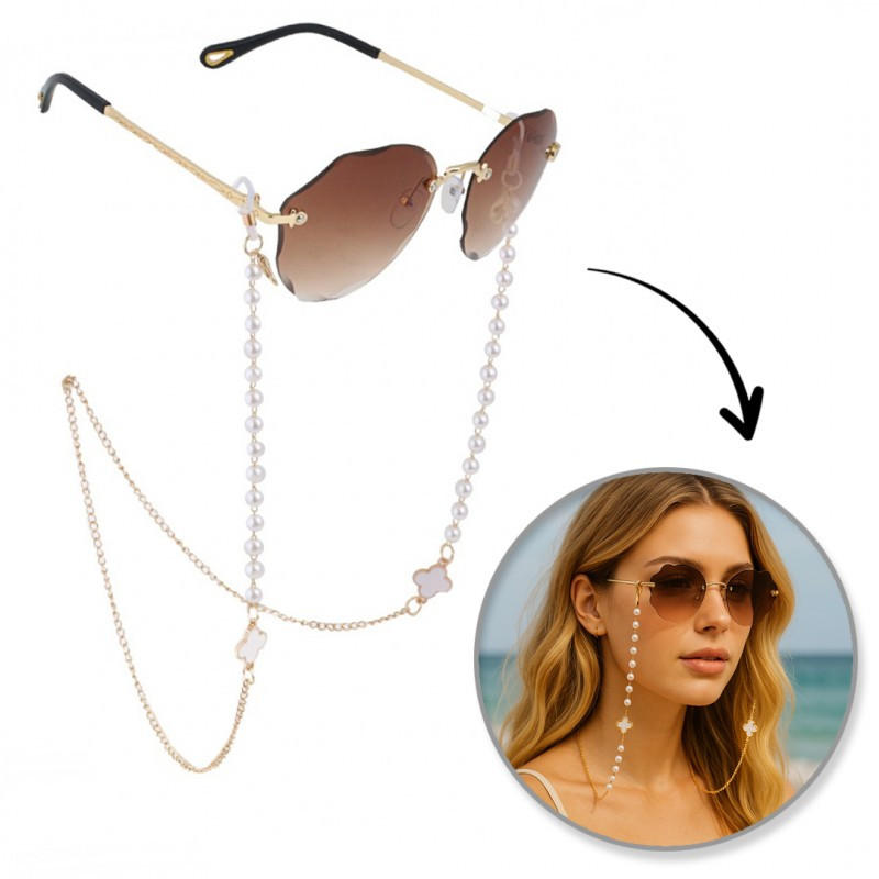 Ez a szemüveglánc a szezon legfelkapottabb kiegészítője. Gyönyörű, stílusos és praktikus kiegészítő a szemüvegedhez. Bármilyen öltözéket feldob! Specifikációk: - Teljes hossz: 76 cm - Súly: 12 g - Rögzítés: rugalmas szalagok
