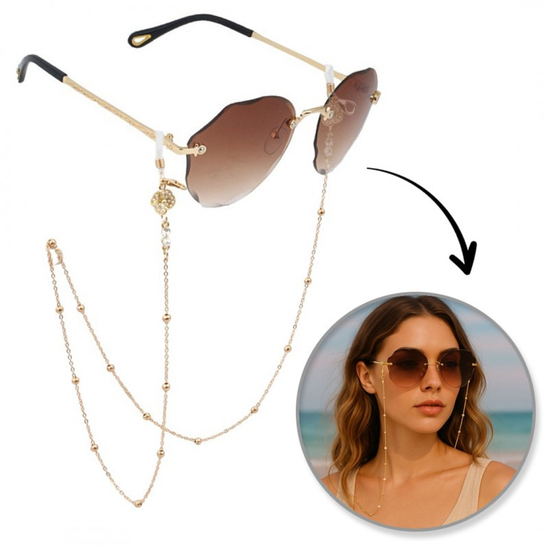 Ez a szemüveglánc a szezon legmenőbb kiegészítője. Gyönyörű, stílusos és praktikus kiegészítő a szemüvegedhez. Feldob bármilyen öltözéket! Specifikációk: - Teljes hossz: 68 cm - Súly: 8 g - Rögzítés: rugalmas szalagok