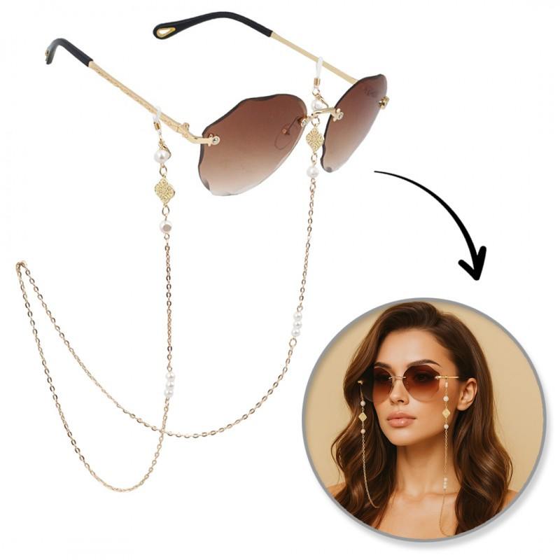 Ez a szemüveglánc a szezon legmenőbb kiegészítője. Gyönyörű, stílusos és praktikus kiegészítő a szemüvegedhez. Feldob bármilyen öltözéket! Specifikációk: - Teljes hossz: 73 cm - Rögzítés: rugalmas szalagok