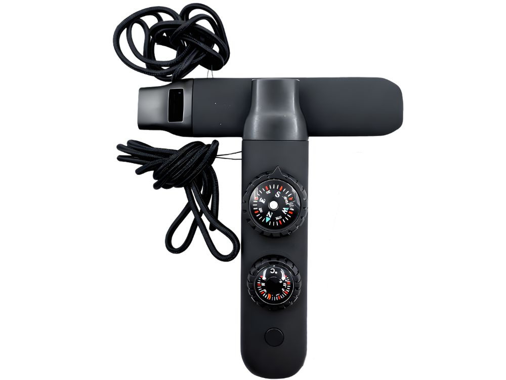 A készülék több praktikus kiegészítőt egyesít magában. A síp mellett iránytűvel is rendelkezik, amely segít meghatározni az irányt a terepen. A beépített hőmérő lehetővé teszi a környezeti hőmérséklet ellenőrzését.