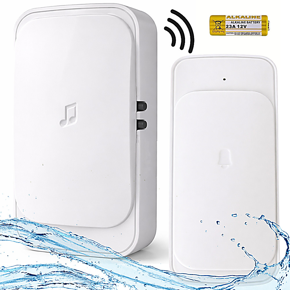 Vezeték nélküli ajtó- és kapucsengő, 300 m hatótávolság, led-es, elemes, vízálló fehér