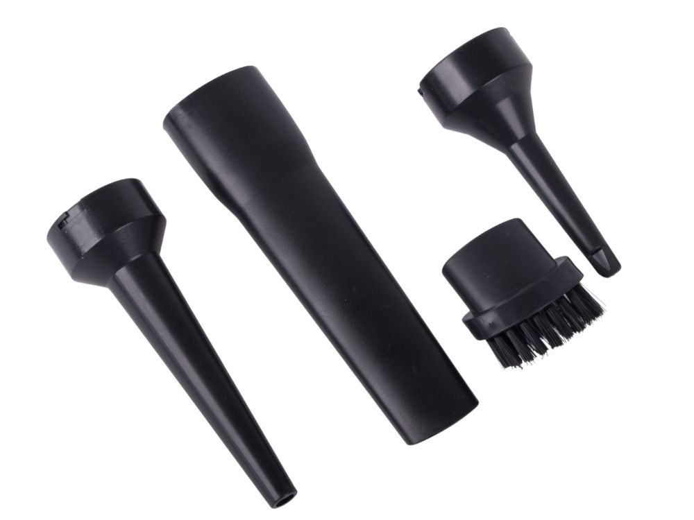 A készlet több cserélhető hegyet tartalmaz: rés- , kefe- és kúpos fúvókákat a fúvóka funkcióhoz. Ez lehetővé teszi, hogy könnyedén elérje az ülések, billentyűzetek vagy szellőzők zugait és alaposan megtisztítsa azokat.