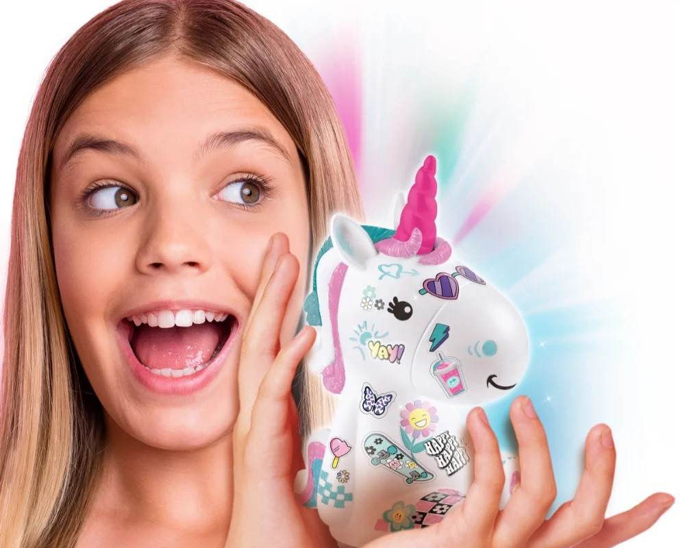 A bájos unikornis szabadon díszíthető számos kiegészítővel és dekorációval.
