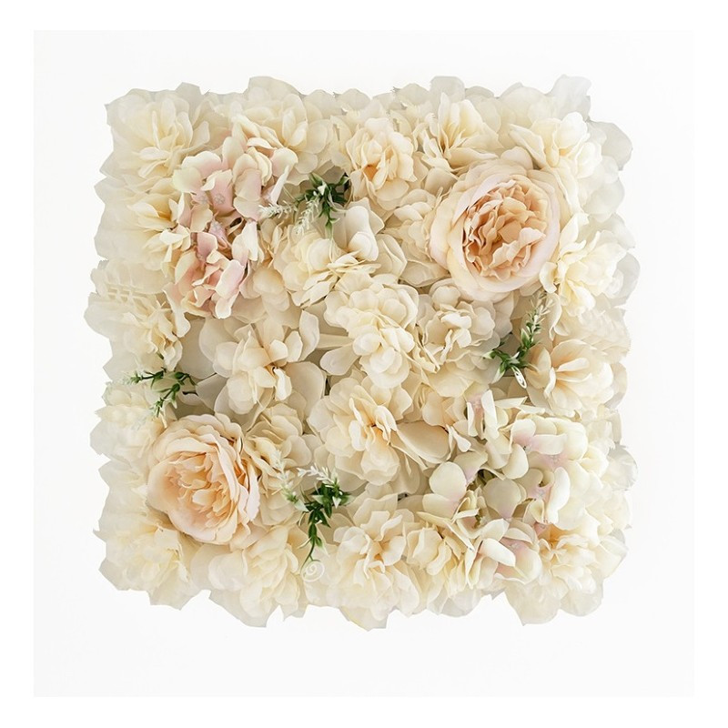 Virágos fali panel hátterként ECRU 35cm x 35cm Szín: A képen látható Anyag: Selyemvirág, Műanyag Méret: 35 X 35 X 6cm Széles körben alkalmazható, a művirágos fali panel használható esküvői faldekorációként, parti háttérdekorációként, otthoni faldekorációként stb.