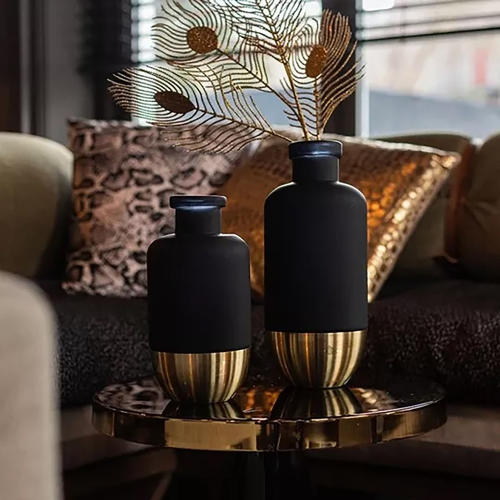 ⭐Virágváza, matt sima, fekete és arany, 31 cm, üveg és fém