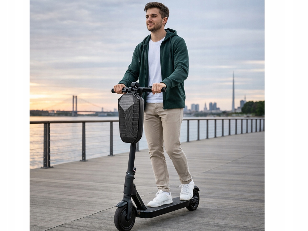 Ez a modern, elektromos roller vagy kerékpár kormányára szerelhető táska ideális megoldás azok számára, akik a legfontosabb holmikat mindig kéznél szeretnék tartani. Merev, kemény szerkezete hatékonyan védi a tartalmát a rázkódásoktól és ütésektől, míg geometrikus formája modern, dinamikus megjelenést kölcsönöz neki. Ez egy praktikus kiegészítő mind a mindennapi ingázáshoz, mind a szabadidős kirándulásokhoz.