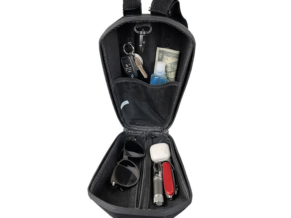 A táska belsejét úgy tervezték, hogy maximálisan kihasználja a rendelkezésre álló teret és kényelmes rendszerezést biztosítson. Belül található egy tágas főrekesz és egy további cipzáras zseb, amelyek lehetővé teszik a kis tárgyak elkülönítését egymástól. Könnyedén elfér benne a telefon, a pénztárca, a kulcsok, a powerbank, a szemüveg vagy más, kerékpározás közben szükséges kiegészítők . Minden stabilan és rendezett marad, még egyenetlen útfelületen való haladás közben is.