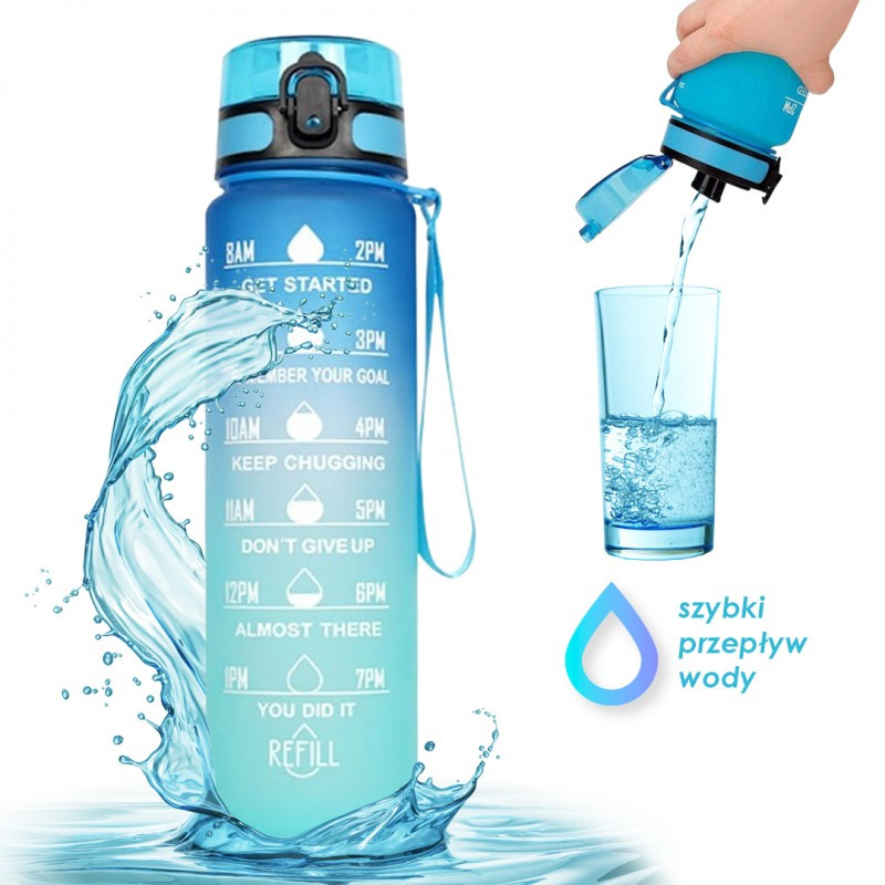 VÍZPALACK Az ivóvíz még soha nem volt ennyire divatos! Specifikációk: - Űrtartalom: 1000ml (átmérő 7,5 cm, magasság a kupakkal 28 cm), - Anyag: PC + PP + szilikon - Vizespalack nyakpánttal. - Nagy és kényelmes nyílás az iváshoz és tisztításhoz. Tisztítás: Kézzel mossa meleg, de nem forró vízben. Ne mossa mosogatógépben, ne fagyassza le, ne forralja fel, ne tegye mikrohullámú sütőbe, és ne használjon erős tisztítószereket vagy súroló szivacsot. Tömeg: nettó 161 g