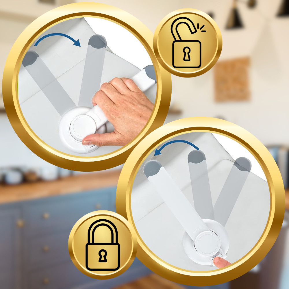 Két mozdulat elegendő a zár rögzítéséhez és kioldásához. Így biztos lehetsz benne, hogy a kicsi nem fogja tudni egyedül eltörni.