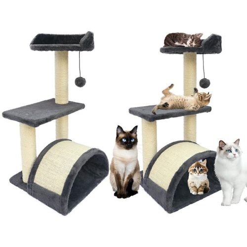 Egy kaparófa tökéletes megoldás macskája természetes kaparási igényeinek kielégítésére, miközben megvédi bútorait. Kiváló minőségű anyagokból készült, ez a kaparófa tartós és vizuálisan vonzó. A különféle kaparó- és játszótereknek köszönhetően macskája edzheti a karmait és aktívan eltöltheti az idejét. Ezenkívül a kaparófa pihenőhelyként is szolgálhat kedvence számára. Specifikációk: Alap méretei: 34,5 x 35 cm, Magasság: 68 cm, Anyag: MDF, puha plüss kárpitozás, 4 szintes macskaház, alagút/híd (magasság 17 cm, mélység 20 cm), függő játéklabda, Csomagolási méretek: 39 x 21 x 36 cm, Raklaponkénti mennyiség: 60