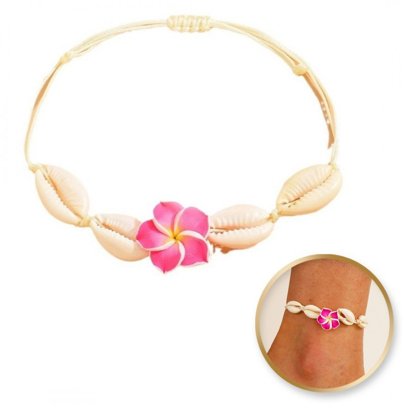 az 1-ben karkötő lábra és kézre, zsinóron, KAGYLÓK és HAWAII VIRÁG B542F