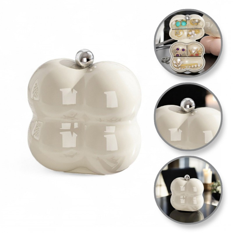 Hordozható ékszerrendező. Hihetetlenül praktikus, lehetővé teszi kedvenc ékszereid rendszerezését és védelmét a sérülésektől. Gyűrűk, fülbevalók és nyakláncok is helyet találnak itt – a felhasznált kiváló minőségű anyagok garantálják a minőséget. Rendkívül funkcionális. Lehetővé teszi, hogy nagy mennyiségű ékszert tárolj kényelmesen egy helyen, és rendezetten rendszerezd őket. Cipzárral záródik. Külső méretek: Magasság: 7,5 cm, Szélesség: 7,5 cm, Mélység: 4 cm. Anyag: Műanyag. Tömeg: 45 g nettó / 49 g bruttó.