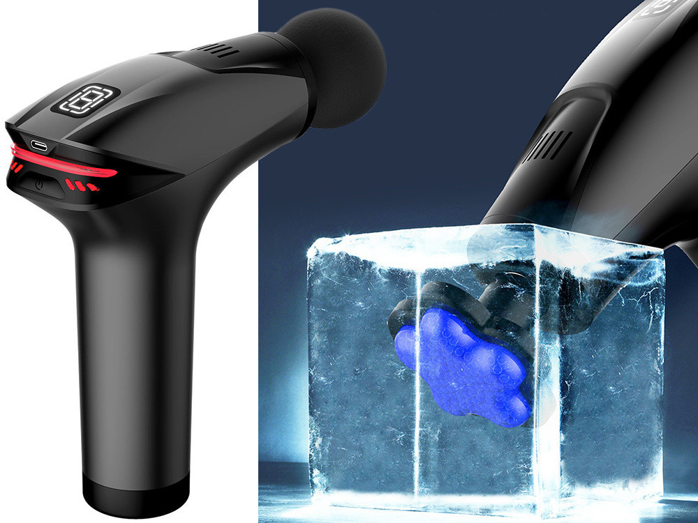 A masszírozó ergonomikus pisztoly alakú formát kapott, így tökéletesen illeszkedik a kézbe. 5 különböző hegyet tartalmaz, amelyek mindegyike más-más izomrészhez készült.