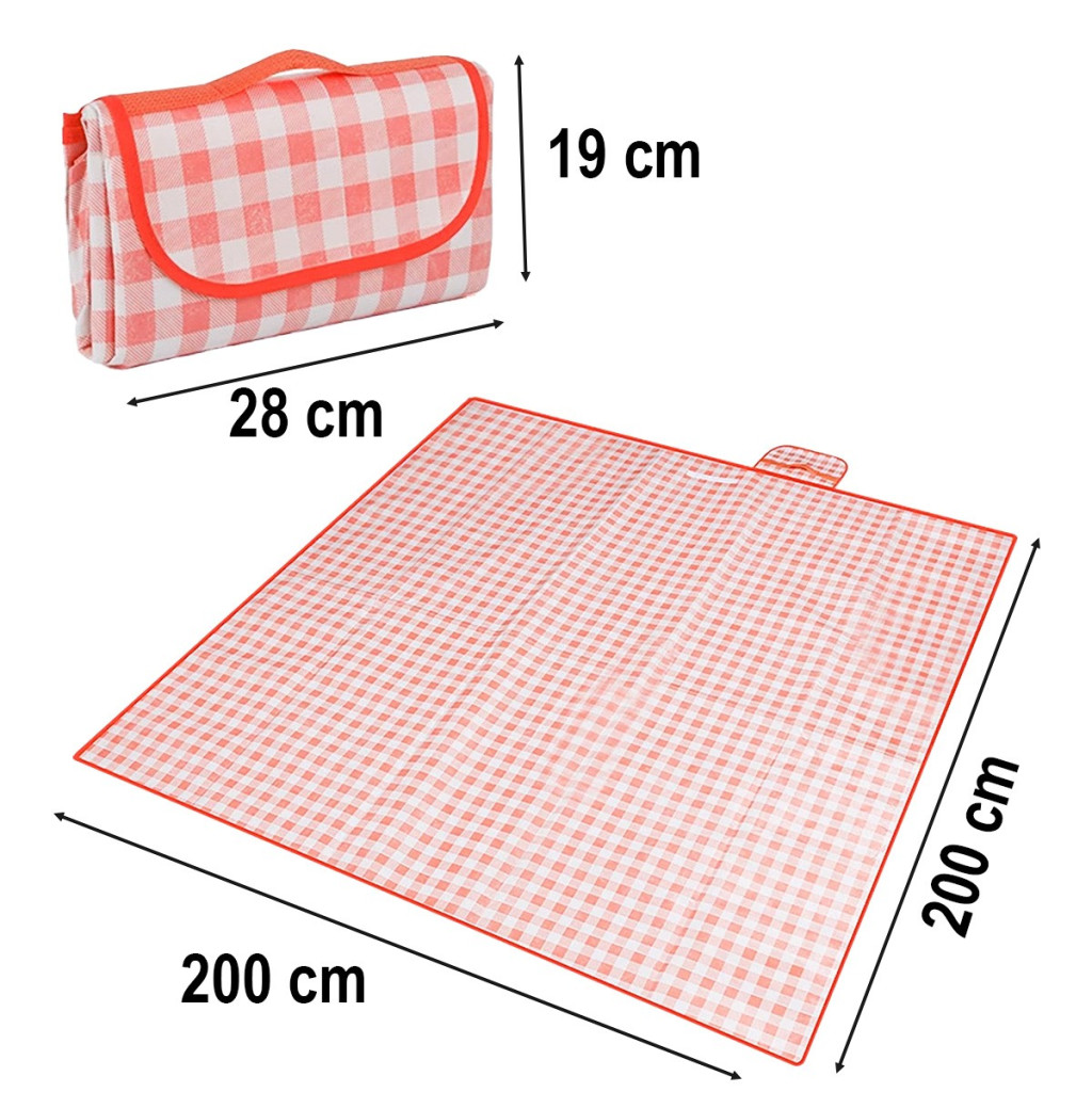 ⭐ PIKNIK STRANDTAKARÓ KEMPINGSZŐNYEG VÍZÁLLÓ HORDOZHATÓ NAGY 2x2m FEHÉR - PIROS KOCKÁS