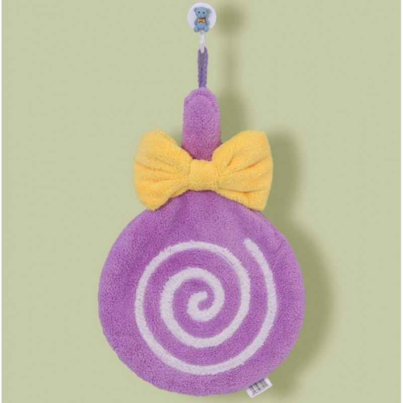 Gyorsan száradó, zsinóros kéztörlő - nyalóka mintás, masnival. Bájos és rendkívül nedvszívó kéztörlő. 20%-kal több vizet szív fel, mint egy hagyományos törölköző. Praktikus akasztóval, nedvszívó képesség: 5-10 másodperc. Méretek: 30 cm x 20 cm. Anyag: Mikroszál.
