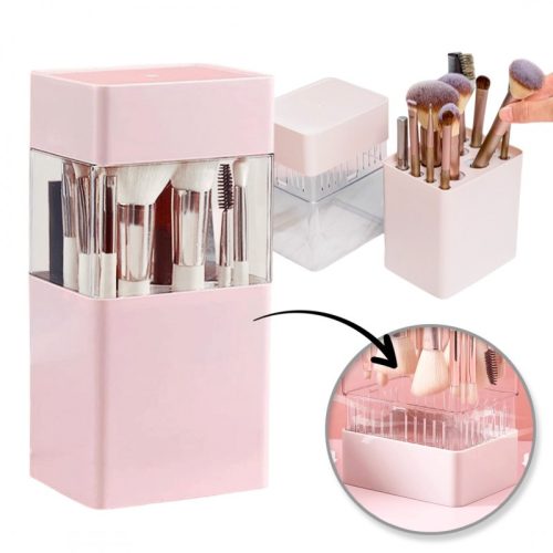 Ecsetrendező: Elegáns ecsetrendező. Tökéletes az ecsetek szárításához. A csúszásgátló szilikon bevonat megakadályozza, hogy az ecsetek kiessenek, ha fejjel lefelé helyezik őket. Az átlátszó ablakos kialakítás könnyű hozzáférést biztosít az ecsetekhez, a szellőzőnyílások pedig felgyorsítják a száradást. Méretek: 22 x 10,5 x 8 cm. Csomagolási méretek: 22,5 cm x 11 cm x 8,5 cm. Tömeg: 300 g nettó / 360 g bruttó. Anyag: Műanyag. Kivételesen elegáns, és szobadíszként is szolgálhat. Segítségével kozmetikumokat és egyéb apró tárgyakat rendezetten tarthatod.