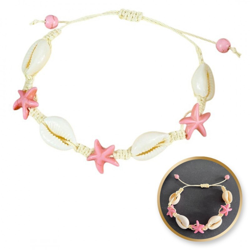 2 az 1-ben karkötő lábra és kézre, zsinóron, KAGYLÓK és CSILLAGOK B543R