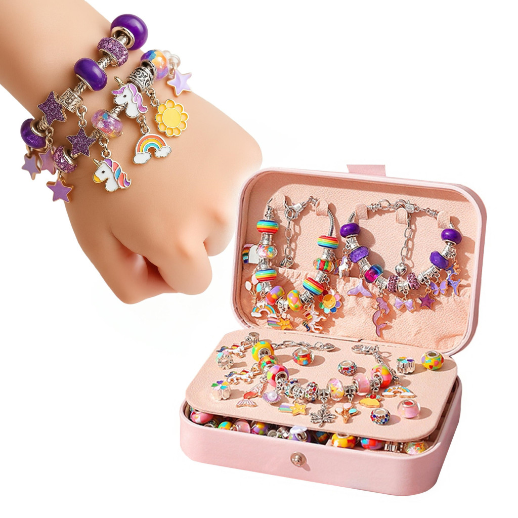 Ez a 132 darabos ékszerkészítő készlet egy kreatív készlet gyerekeknek, amellyel saját karkötőket, nyakláncokat és kulcstartókat tervezhetnek. Az elegáns rózsaszín doboz színes gyöngyöket, medálokat, láncokat és felszerelési kiegészítőket tartalmaz – mindezt szépen rendszerezve és játékra készen. Tökéletes ajándék a kicsik képzelőerejének, finom motoros készségeinek és esztétikai érzékének fejlesztésére.