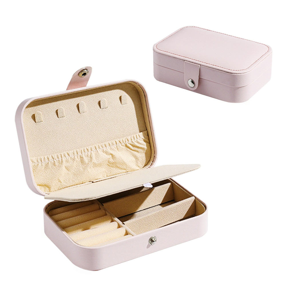 A doboz öt ékszerakasztót, három rekeszt, hat gyűrűtartót,