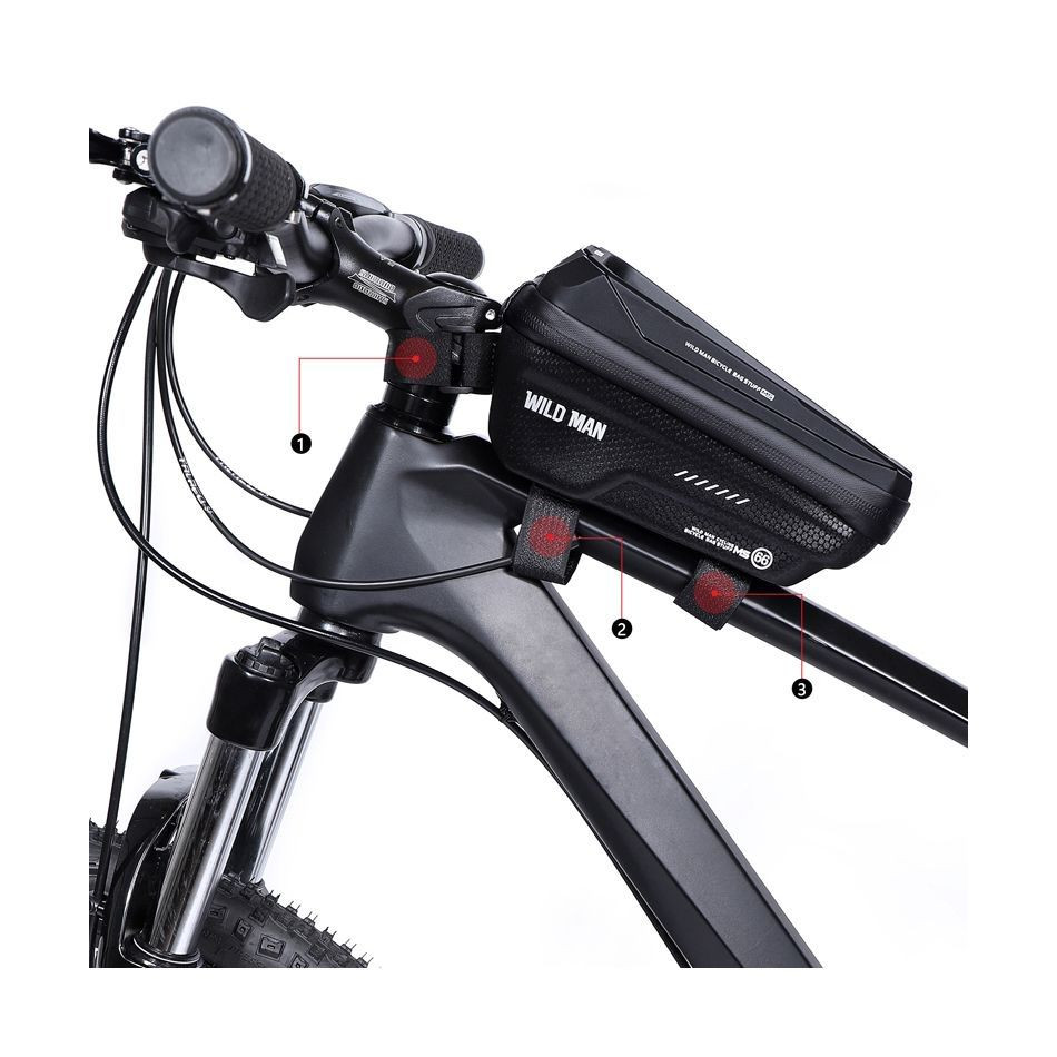 A WILDMAN MS66 váztáska egy praktikus táska okostelefonnak megfelelő hellyel, ideális a váz tetejére való rögzítéshez. Gyors hozzáférést biztosít a telefonhoz és a legfontosabb dolgokhoz kerékpározás közben - megállás nélkül.