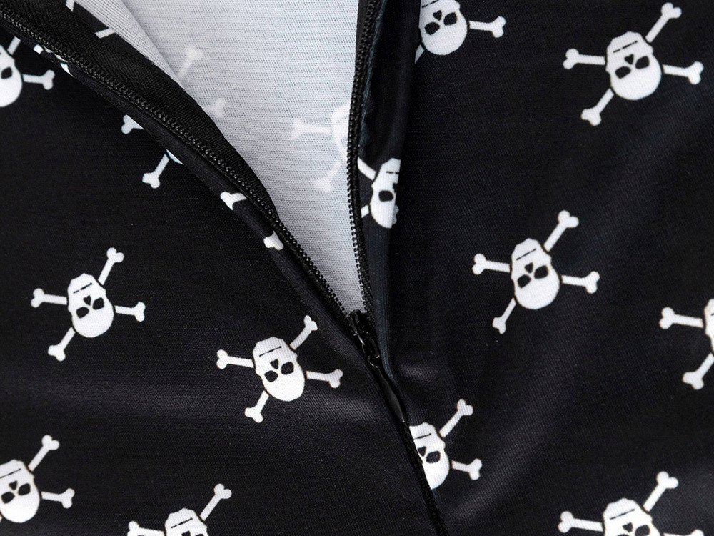 A ruha fő része egy klasszikus fekete ruha fehér koponyákkal , amely szorosan utal a karakter jellegzetes stílusára. A ruha hosszú ujjú, fehér mandzsettával, ami különleges megjelenést kölcsönöz neki. Elasztikus anyagból készült, kényelmes és tökéletesen illeszkedik.