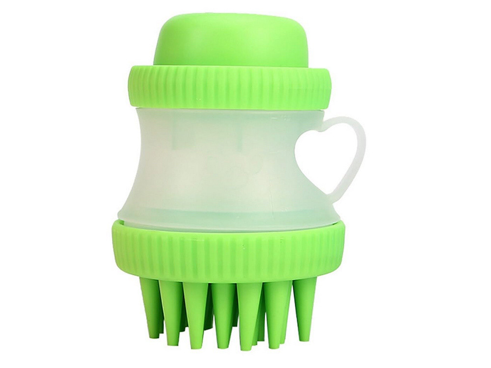 Kutyamosó szilikon kefe folyékony szappan adagolóval, zöld