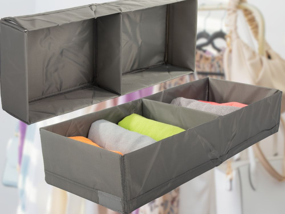 Állítson helyre rendet a szekrényében és fiókjaiban! Ez a praktikus, elválasztókkal ellátott szervező ideális megoldás fehérneműk, zoknik, törölközők vagy más kisebb ruhadarabok tárolására .
