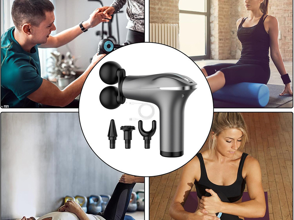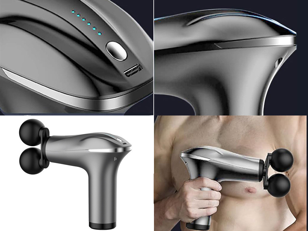 Kétfejes masszázspisztoly test lábmasszírozó 4 fej ezüst