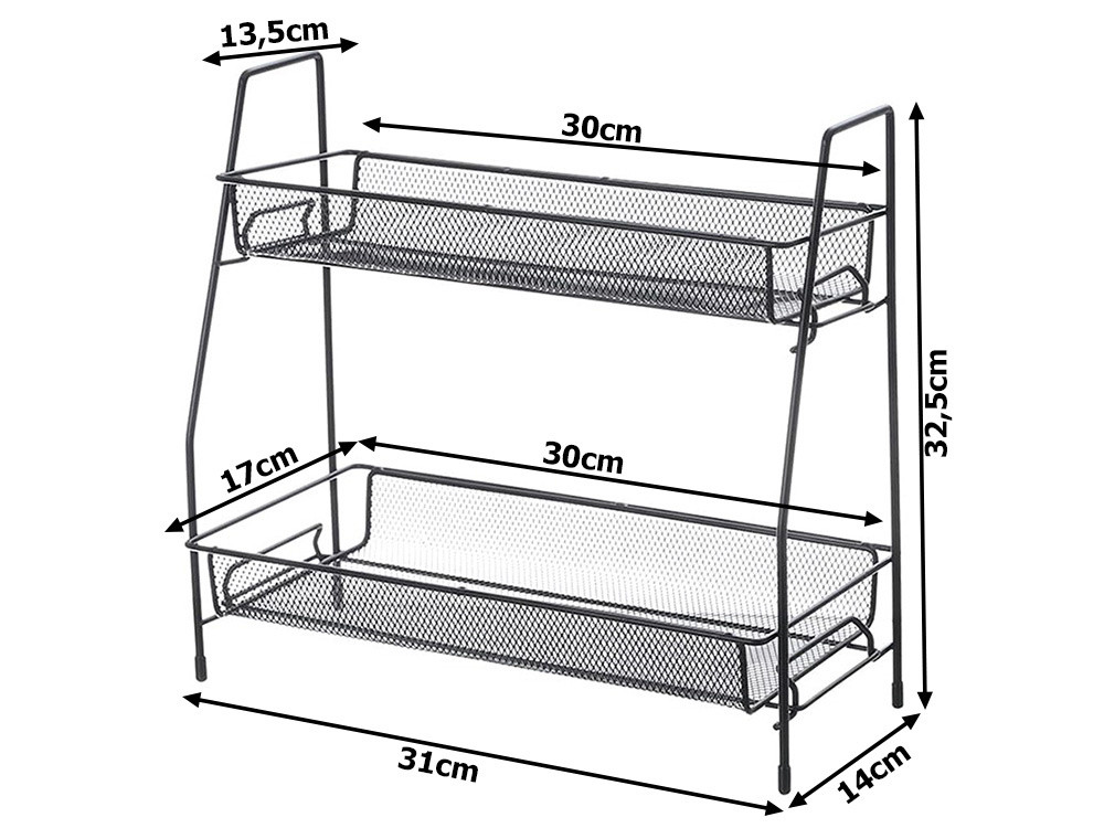 Bemutatunk egy stílusos és sokoldalú, tetőtéri stílusú, kétszintes fém szervezőt, amely fürdőszobájának vagy konyhájának szerves részévé válik. Elegáns kialakításával és masszív felépítésével ez a szervező nem csak rendet tesz a körülötted lévő térben, hanem modern hatást is kölcsönöz.