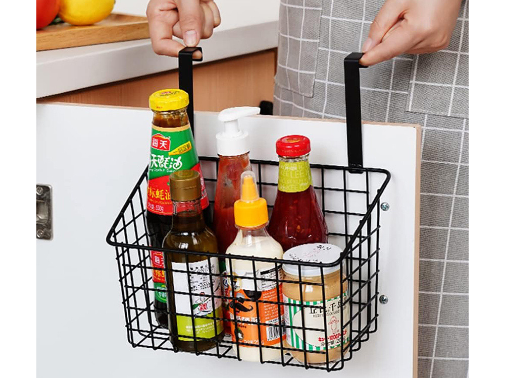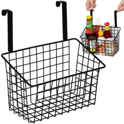Kosár fém ajtóra akasztható szervező konyhai függőpolc fekete