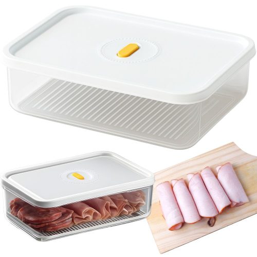 Az 1,4 l -es tároló tökéletes megoldás friss termékek, snackek, gyümölcsök, zöldségek és hideg húsok tárolására. Átlátszó falainak köszönhetően gyorsan ellenőrizheti a tartalmát, a légmentes fedél pedig megvédi az élelmiszereket a kiszáradástól és a szagok kiszivárgásától. Kis méretének köszönhetően a tároló bármely hűtőszekrénybe, fiókba vagy táskába befér.