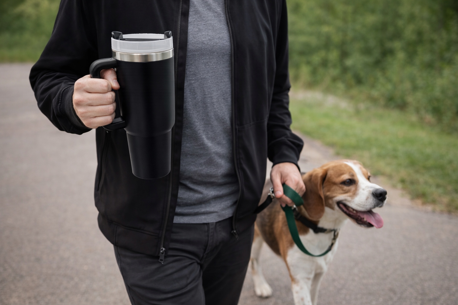 A pohár kényelmes fogantyúval, szorosan illeszkedő fedéllel és szalmával rendelkezik, amely lehetővé teszi az ivást a pohár megdöntése nélkül. Ez azt jelenti, hogy autóval, irodában vagy a szabadban is használhatja anélkül, hogy kiömlés veszélye lenne. A széles talp stabilitást biztosít, a kiváló minőségű acélszerkezet pedig évekig tartó tartósságot garantál.