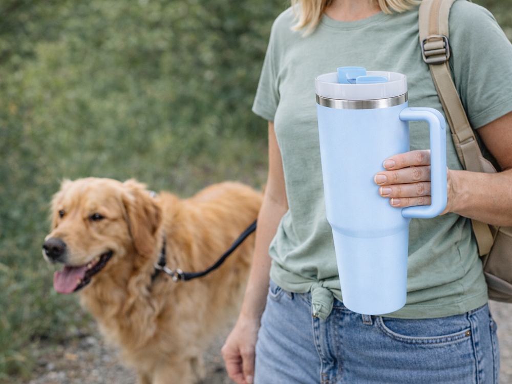 A pohár kényelmes fogantyúval, szorosan illeszkedő fedéllel és szalmával rendelkezik, amely lehetővé teszi az ivást a pohár megdöntése nélkül. Ez azt jelenti, hogy autóval, irodában vagy a szabadban is használhatja anélkül, hogy kiömlés veszélye lenne. A széles talp stabilitást biztosít, a kiváló minőségű acélszerkezet pedig évekig tartó tartósságot garantál.