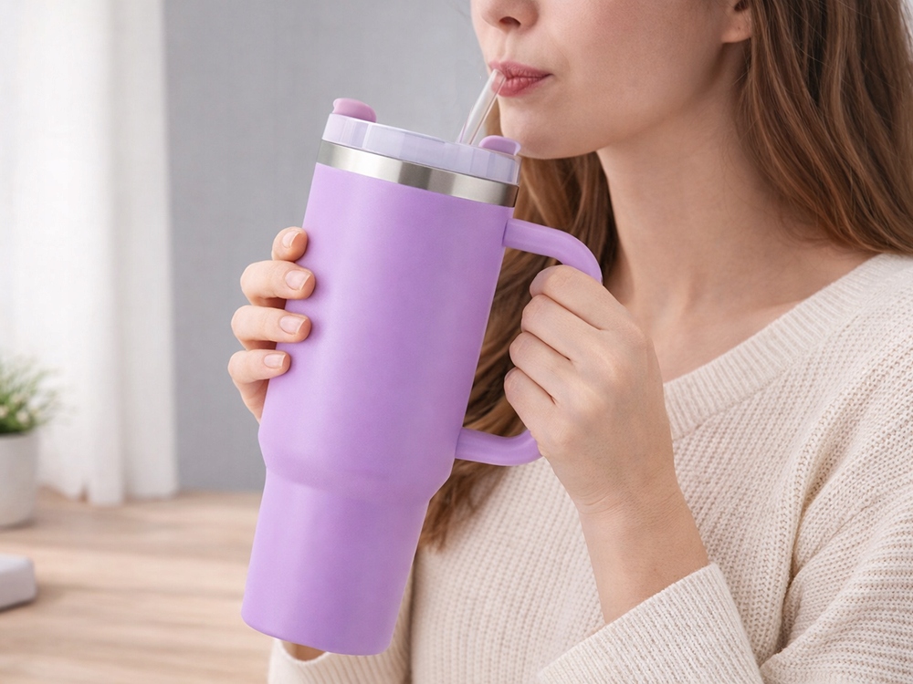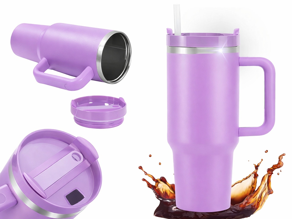 A pohár kényelmes fogantyúval, szorosan illeszkedő fedéllel és szalmával rendelkezik, amely lehetővé teszi az ivást a pohár megdöntése nélkül. Ez azt jelenti, hogy autóval, irodában vagy a szabadban is használhatja anélkül, hogy kiömlés veszélye lenne. A széles talp stabilitást biztosít, a kiváló minőségű acélszerkezet pedig évekig tartó tartósságot garantál.