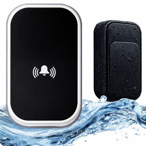 Vezeték nélküli kinetikus csengő ajtókhoz és kapukhoz, 130 m hatótávolsággal, ip68 vízálló fekete