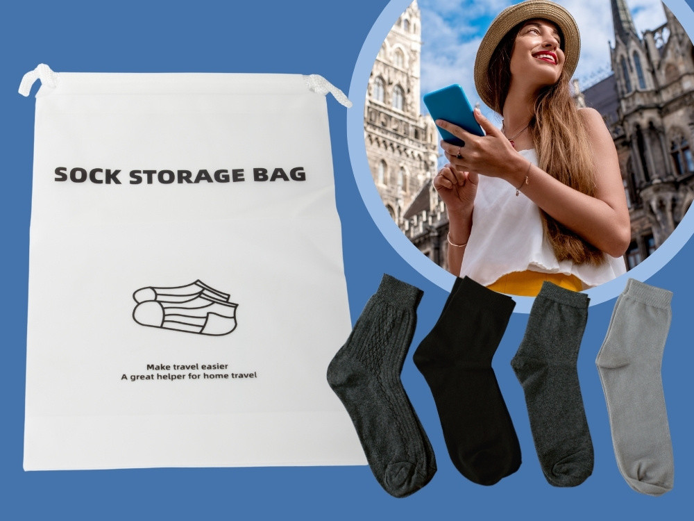 A praktikus zoknis táska ideális megoldás azok számára, akiknek fontos a rend és a kényelem utazás közben. Ennek köszönhetően zoknijai mindig rendezetten és könnyen hozzáférhetően lesznek.
